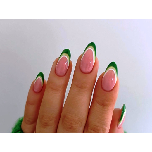 Set of 10 nails, UV treated, all hand made reusable Press-On Nails, Round shape tip, Green colour , Glossy finish